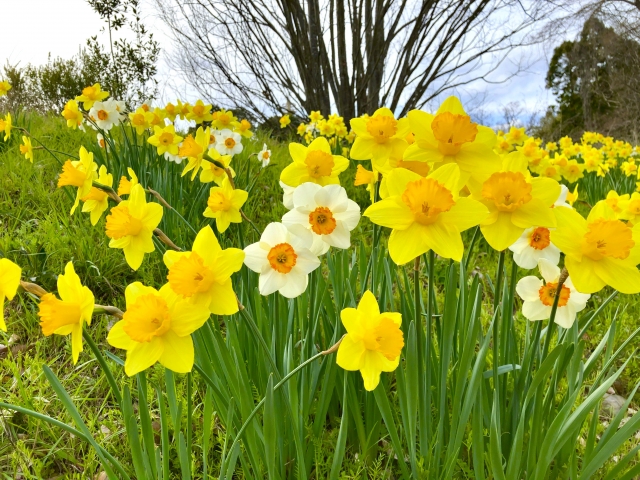 春の訪れを告げるような、鮮やかな黄色の水仙(ラッパスイセンなど)。